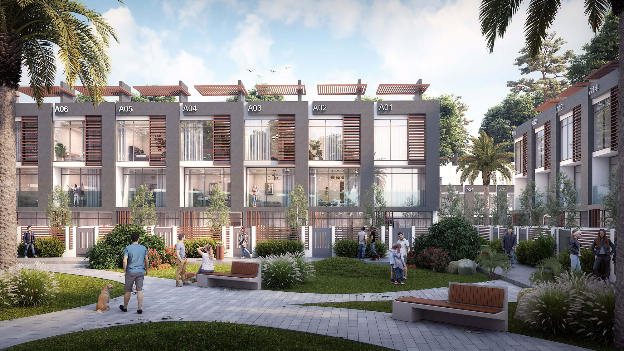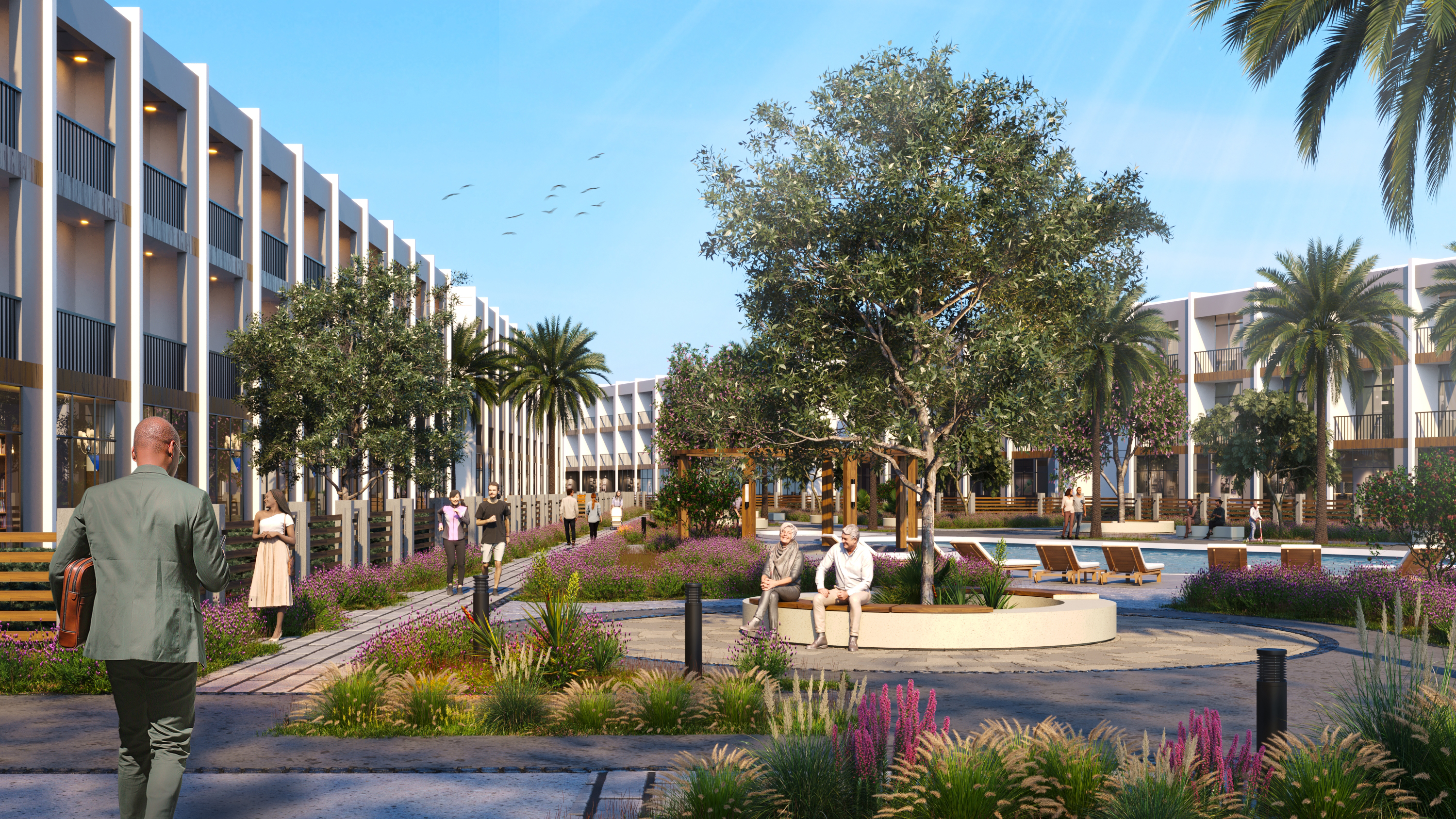 Zona rezidenciale përfshin një numër prej 374 shtëpish qyteti dhe ndërtesa të shumta rezidenciale që ofrojnë njësi njëkatëshe dhe dykatëshe me madhësi të ndryshme që variojnë midis apartamenteve me 1, 2, 3 dhe 4 dhoma gjumi, dhe kopshte private për njësi të zgjedhura. Projektet bashkëkohore, fasadat moderne dhe finiturat me cilësi të lartë flasin për bukurinë italiane dhe vendosin standardet për një jetesë me cilësi të lartë, duke ofruar një kryevepër për ta quajtur shtëpi.