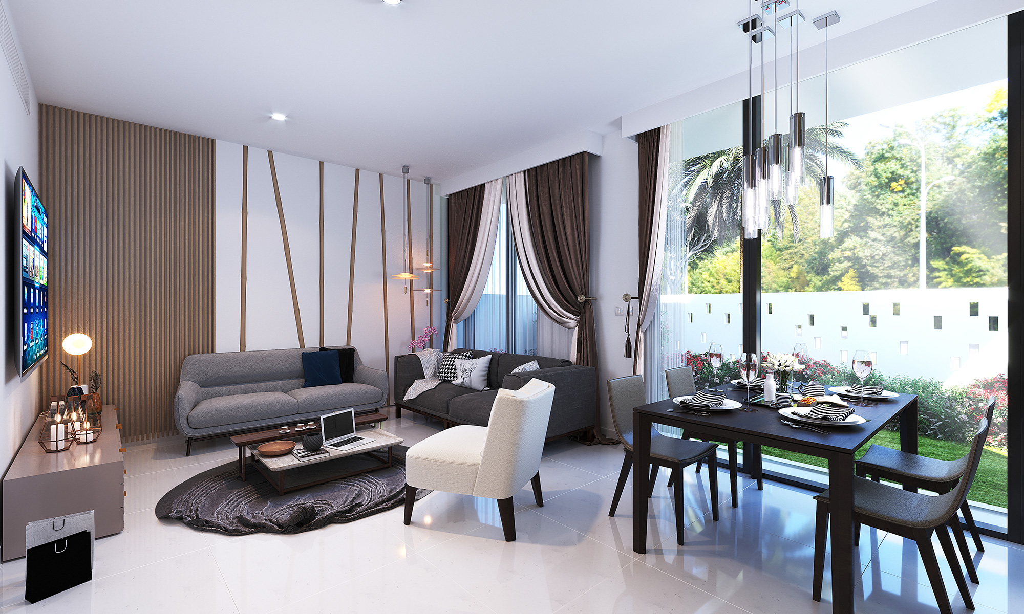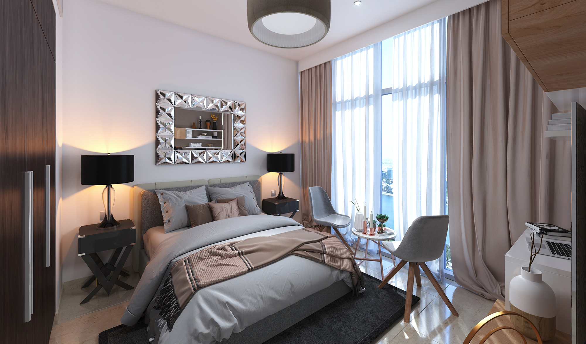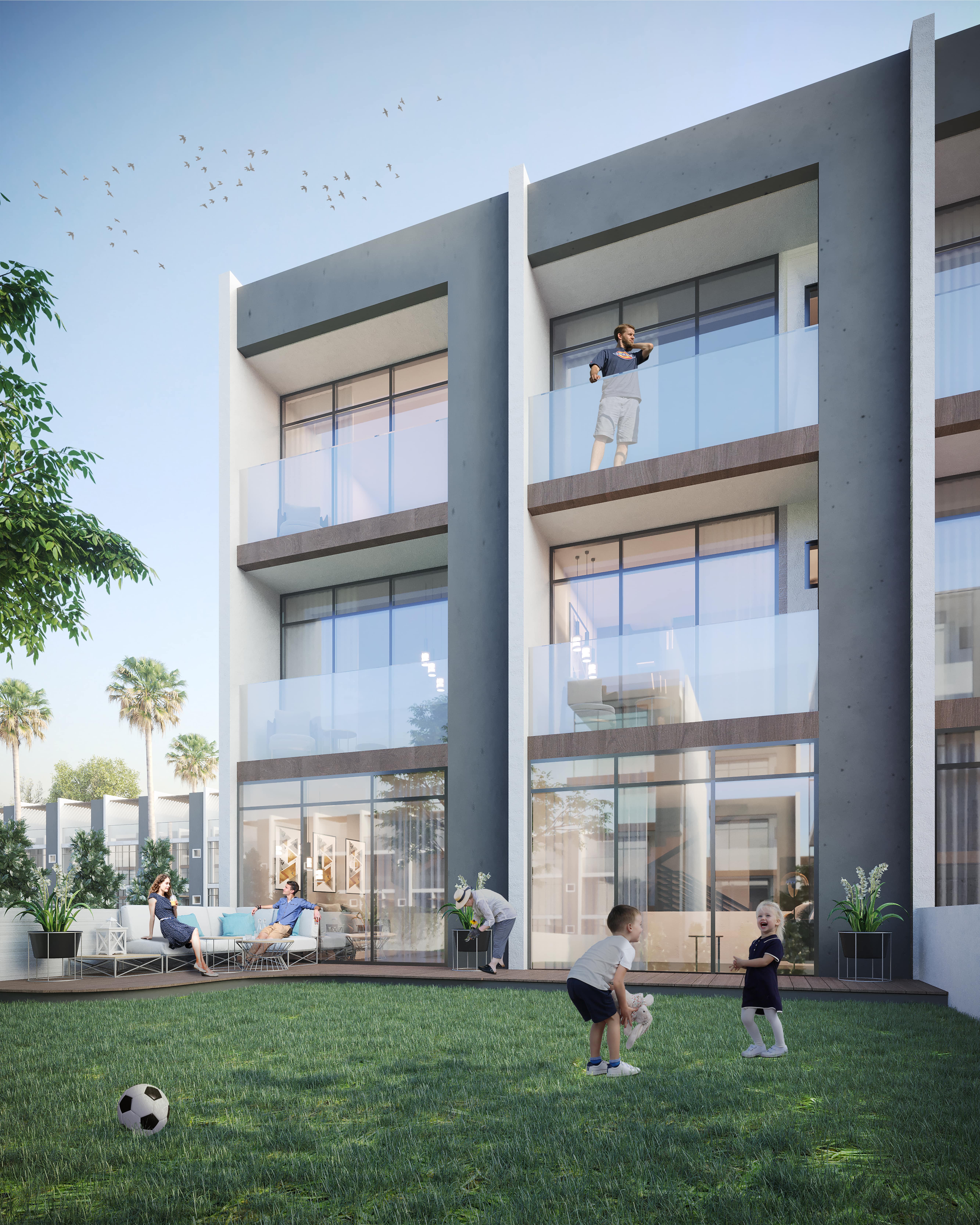 Fasadat me cilësi të lartë dhe me dopio xham funksionojnë në harmoni së bashku për të mirëpritur dritën e diellit, ajrin dhe gjithë qetësinë e natyrës në parajsën tuaj të vogël. Çdo detaj është i mirëmenduar për të përmbushur shijet dhe nevojat e banorëve të të gjithë tipave dhe për të vendosur standardet për funksionalitetin dhe jetesën me cilësi të lartë.