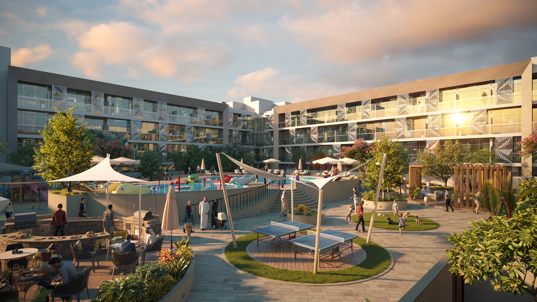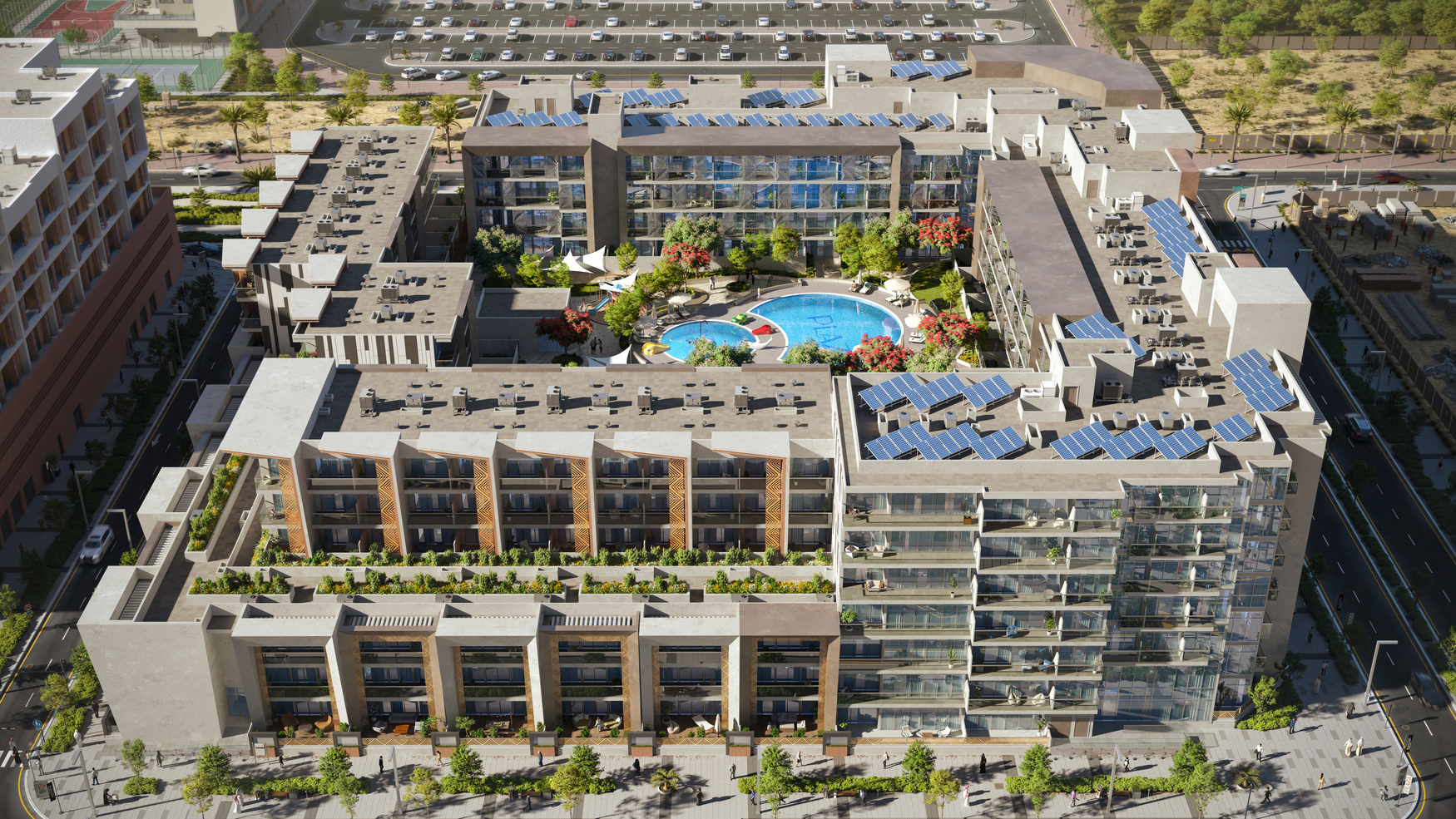 Në një nga komunitetet urbane më të qëndrueshme, Plaza shquhet si një kryevepër në arkitekturën moderne dhe për stilin e pakrahasueshëm të jetesës. Duke ndjekur qasjen futuriste të Abu Dhabi-tt, ky kompleks rezidencial i vlerësuar me 3 Perla është një përzierje e bashkëkohores dhe luksit brenda një dizajni funksional të planifikuar në përsosmëri, ku natyra bashkohet me teknologjinë duke krijuar një komunitet ekologjik dhe një stil jetese inovative.